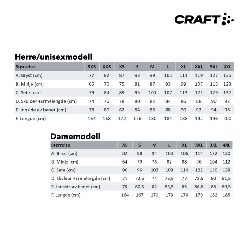| Størrelser | XS, S, M, L, XL, 2XL |