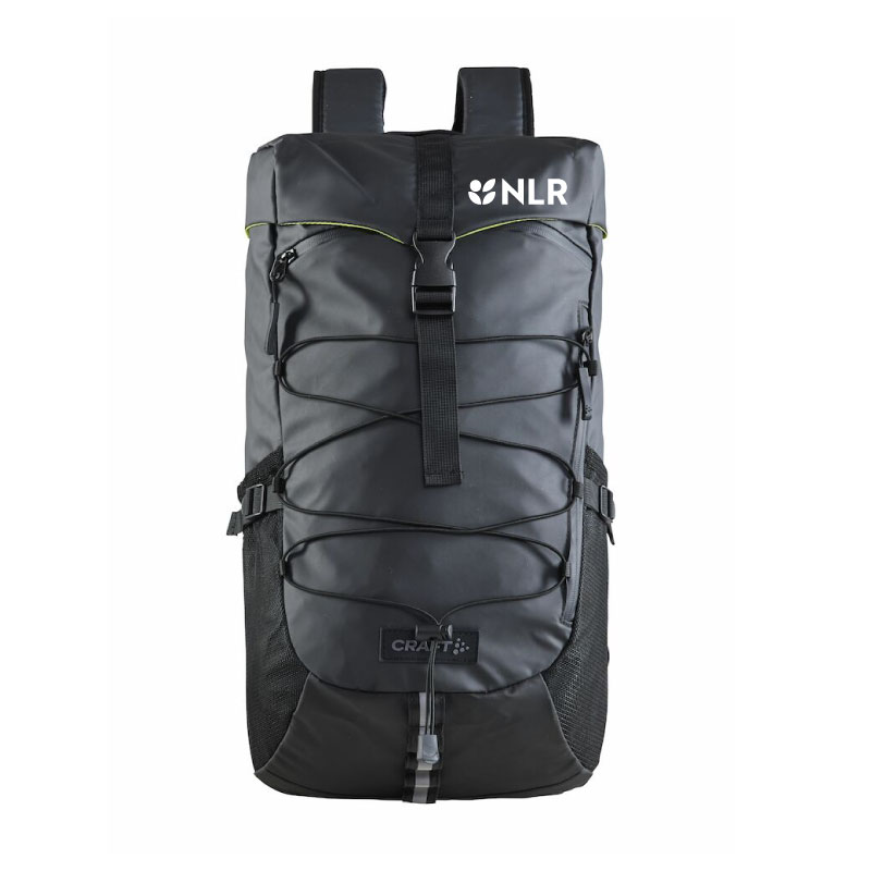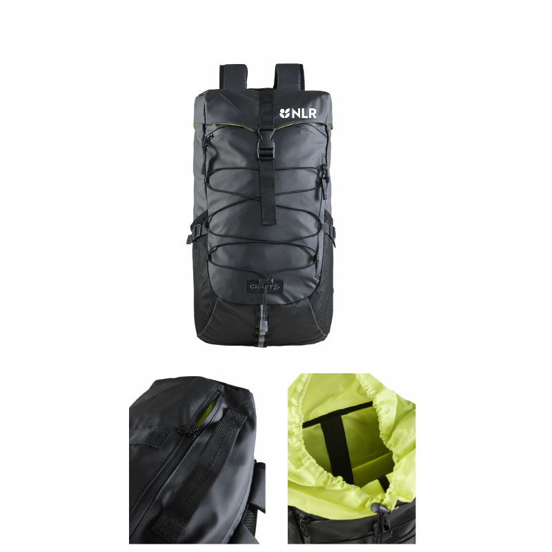 regnbeskyttende topplokk, og praktiske lommer for oppbevaring av for eksempel regnjakke eller vannflaske.